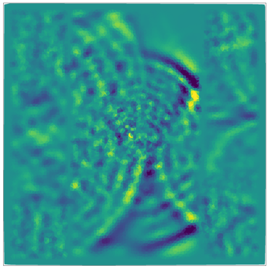 This script creates the fifth column of paper’s Figure 2. Simulation of wave-propagation over a mesh of 1E4 nodes with variable propagation-coefficients.