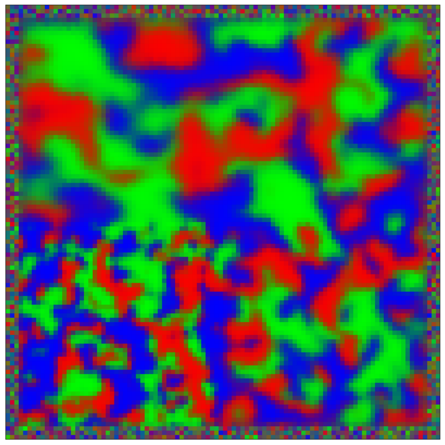 return torch.remainder(x - 0.5, 1.0) - 0.5The data is generated with the above Pytorch Geometric model. Note two datasets are generated, one for training and one for validation. If the simulation is too large, you can decrease n_particles (multiple of 5) and n_nodes in “RD_RPS.yaml”