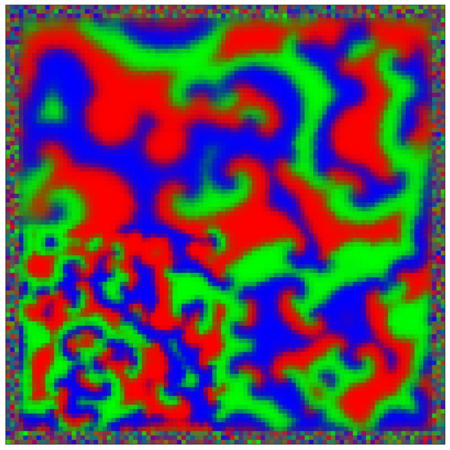 Compute the reaction diffusion according to the rock paper scissor model.