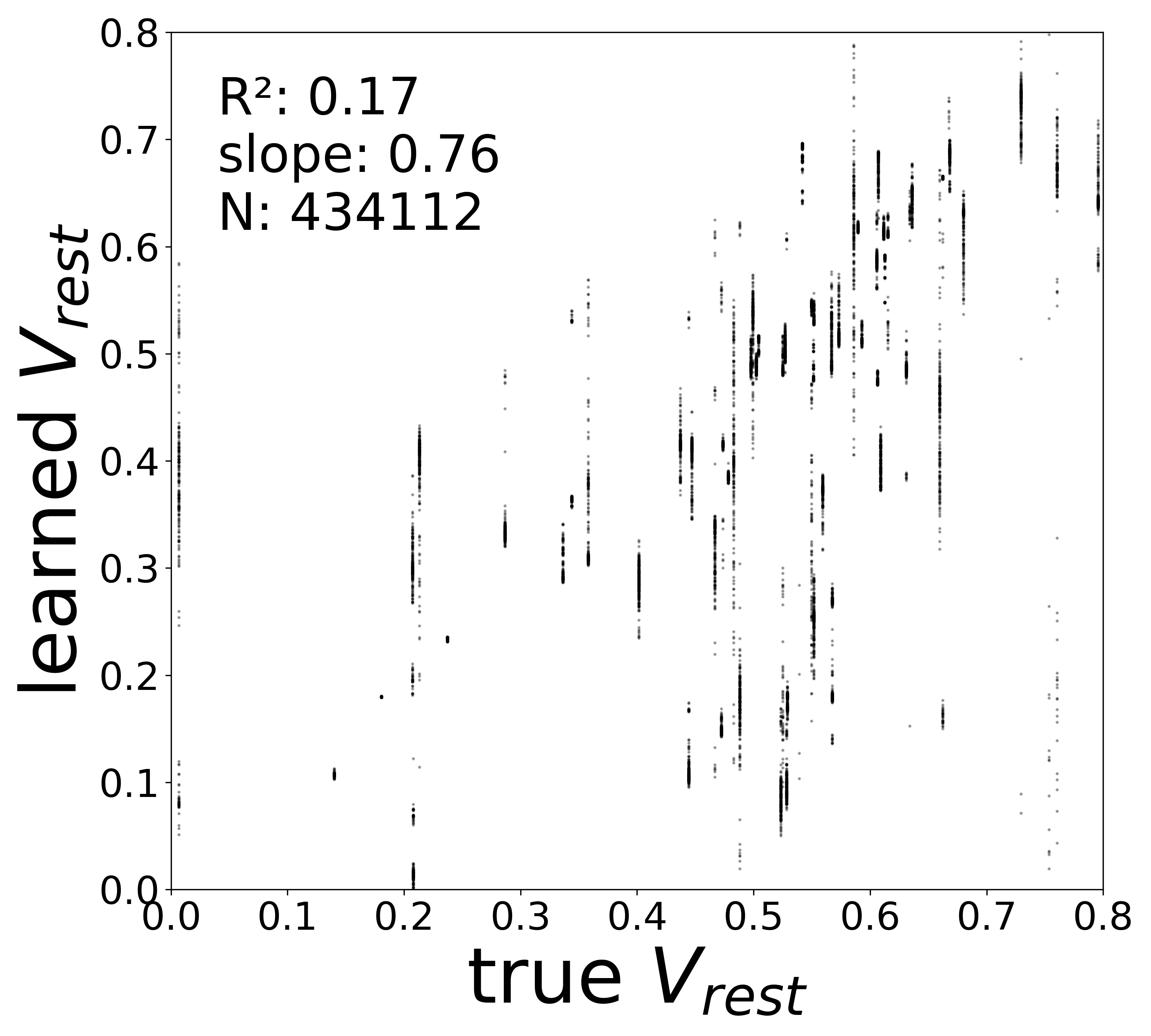Despite the added complexity of jointly learning the stimulus field, the GNN still recovers synaptic weights, time constants, resting potentials, and neuron-type embeddings with quality comparable to the known-stimulus baseline. This confirms that the inverse problem remains well-posed even when the input drive is unknown.