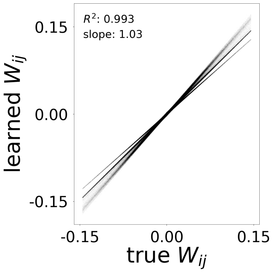 Fig 3d: Comparison of learned vs true connectivity W_ij